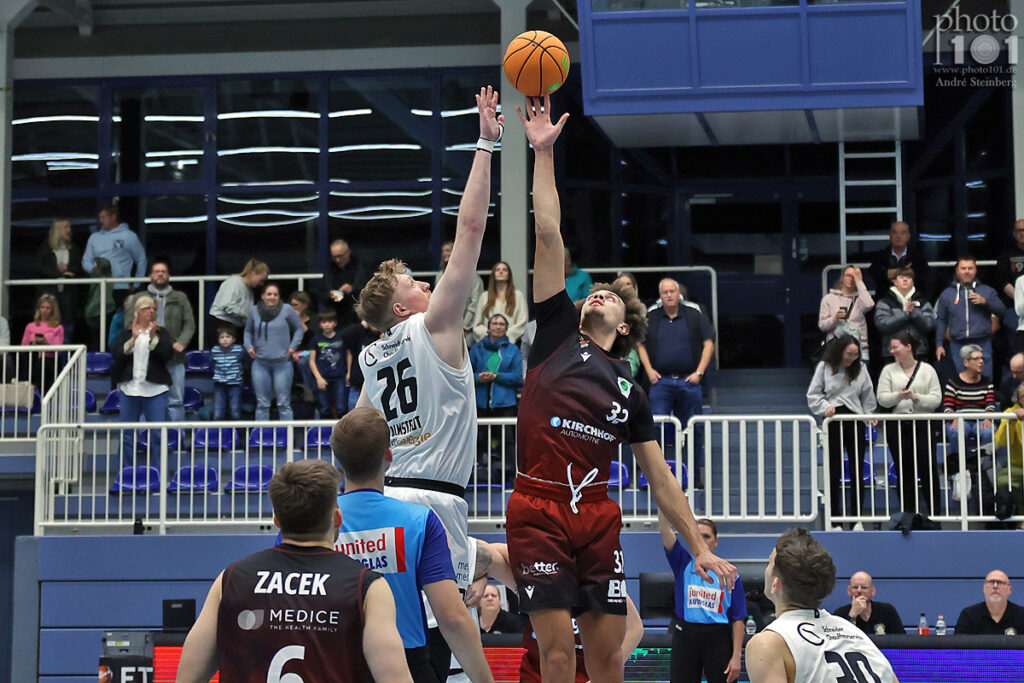 Schon im ersten Viertel legten die Miners den Grundstein für den späteren Erfolg. Mit 21:17 entschied das Essener Team den Auftaktabschnitt für sich. Vor allem der US-Amerikaner Quashawn Lane, Gabriel Jung und Jonathan Almstedt sorgten jeweils mit fünf Punkten für offensive Akzente. Während Essen in dieser Phase noch mit der Dreierquote haderte – nur zwei von sieben Versuchen fanden ihr Ziel –, überzeugte das Team mit starken Aktionen unter dem Korb. Auf Seiten der Gäste war es insbesondere Tyson Leito, der mit schnellen Punkten dagegenhielt. Dennoch behauptete der ETB nach den ersten zehn Minuten eine knappe Vier-Punkte-Führung.