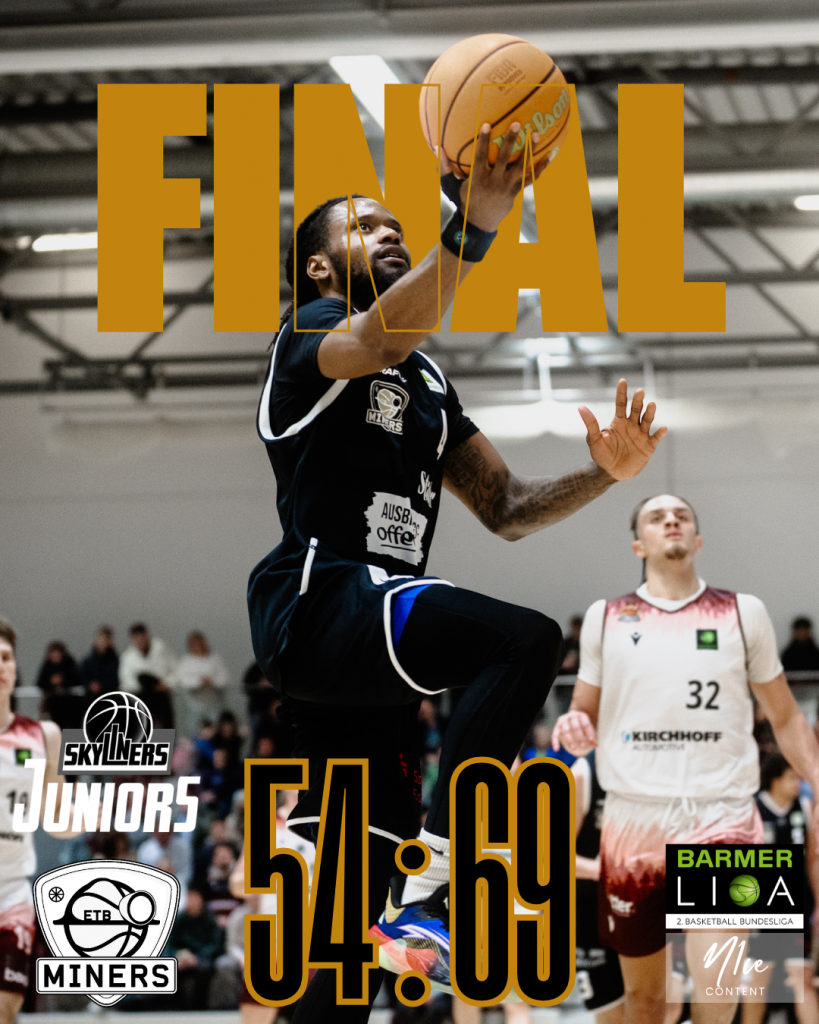 Die ETB Miners Essen gewinnen Spiel 2 des Playoff-Achtelfinals auswärts bei den Skyliners Juniors mit 69:54 und entscheiden die Serie für sich. Ausschlaggebend war eine starke erste Halbzeit, in der sich die Miners früh klar absetzen konnten.